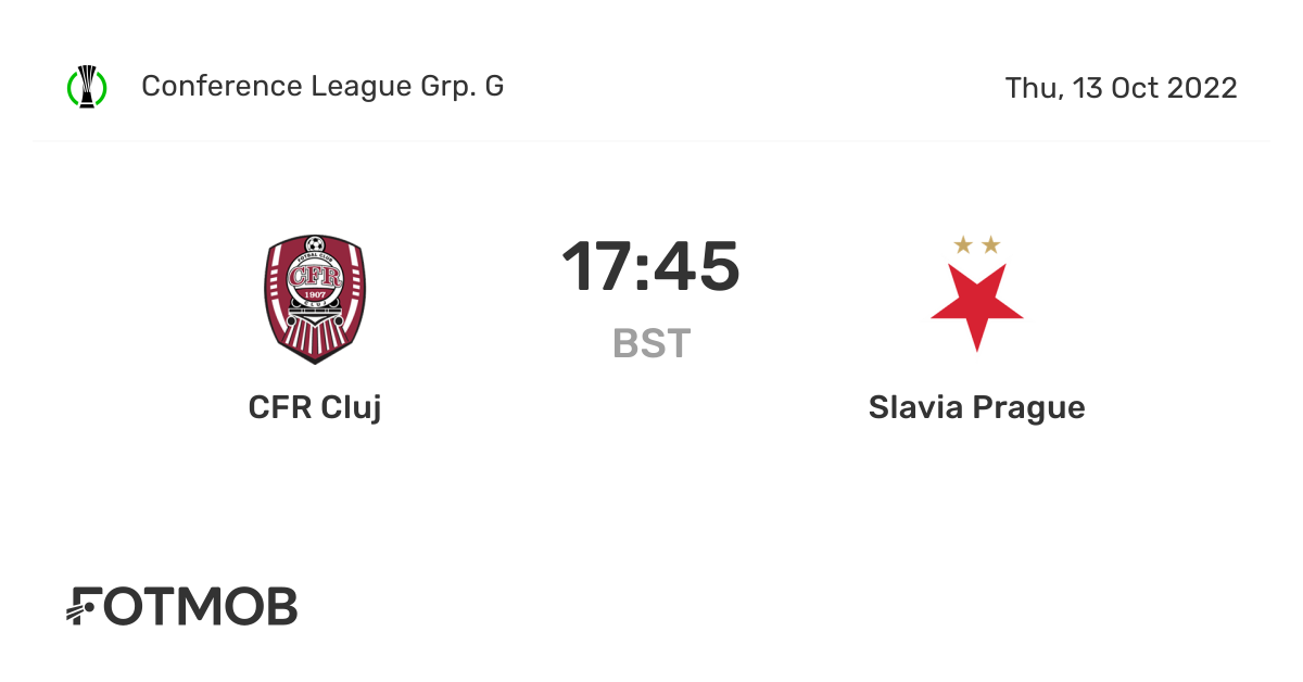 - Thursday 13th October 2022 CFR Cluj vs Slavia Prague UEFA Europa Conference League Latest games Last. Head to Head Record - CFR Cluj vs Slavia Praha CFR Cluj 33 3 Matches 33 0 67 1 Wins 2 Wins Slavia Praha 67 CFR Cluj vs Slavia Prahas head to head record shows that of the 3. CFR Cluj and Slavia Prague at UEFA Europa Conference League soccer league. 13102022 UEFA Europa Conference League Game week 4 KO 1845.
